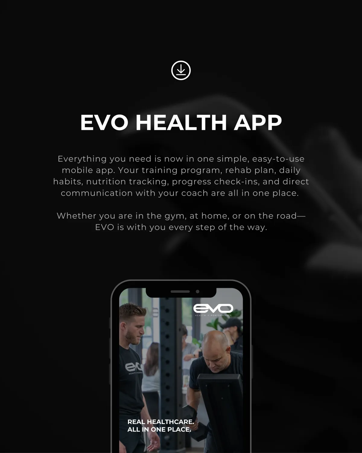 And with the launch of our new EVO Health App, we want you to see what it feels like to have your training, rehab, recovery, and progress tracking all in one place.